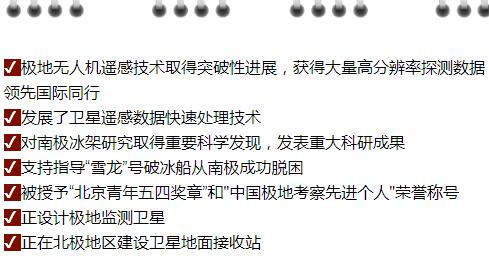 北京师范大学全球变化与地球系统科学研究院院长程晓。我从事南北极相关研究将近20年,曾经4次参加南极考察,多次进入北极地区考察。过去五年,我国极地研究工作取得突飞猛进的发展。程晓带领团队发展的卫星遥感数据快速处理技术,对南极冰架进行研究,取得了重大科研成果,是我国极地气候研究的标志性成果。2016年,程晓的团队的极地无人机遥感技术取得了突破性进展,先后在北极和南极试飞成功并投入业务化运行。这种使用小型固定翼无人机在极地开展遥感作业的技术,除了美国、日本、挪威,只有中国能做到。(来源:中国青年网)
