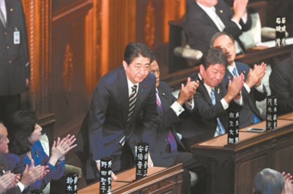 日本国会众参两院1日举行首相指名选举,自民党总裁安倍晋三当选日本第98任首相。安倍当选后立即组建新内阁,今年10月大选前的内阁成员全部留任。(新华日报)