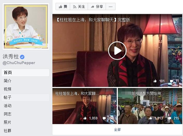 洪秀柱开网络直播谈台湾乱象:吴敦义要强硬起来