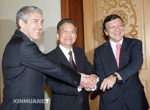 11月28日,国务院总理温家宝在北京人民大会堂与欧盟轮值主席国葡萄牙总理苏格拉底(左)和欧盟委员会主席巴罗佐举行第十次中欧领导人会晤。 新华社记者姚大伟摄