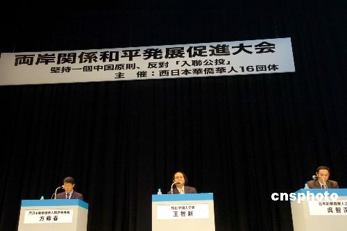3月16日,西日本华侨华人16团体约300人在大阪联合举行“两岸关系和平发展促进大会”并发表了题为“强烈反对台湾当局的‘入联公投’,坚决维护两岸和平发展”的联合声明。图为王智新、吴智深、方苏春等旅日学者在大会上就“入联公投”的背景、“台独”势力的发展与日本、海外华人华侨对两岸关系的态度等问题进行讨论。 中新社发 朱沿华 摄