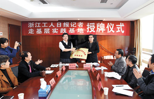在揭牌仪式上,本报总编辑傅建成表示,服务工会、服务职工是浙江工人日报的“第一天职”,建立“工报记者走基层实践基地”是进一步建好浙江工会宣传主阵地的客观要求,是进一步体现工作重心下沉,贴近基层、走进一线的创新之举。今年以来,浙江工人日报推出的一系列“记者走基层”报道得到了省新闻出版广电局等上级部门的充分肯定。他希望随着基地的建设和完善,进一步打响“工报记者走基层”品牌,让“走转改”成为工报新常态。