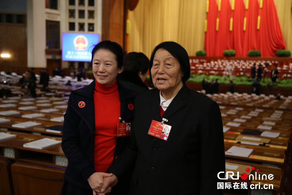 女人大代表代表申纪兰出席全国人代会(右) 摄影:邓晨曦
