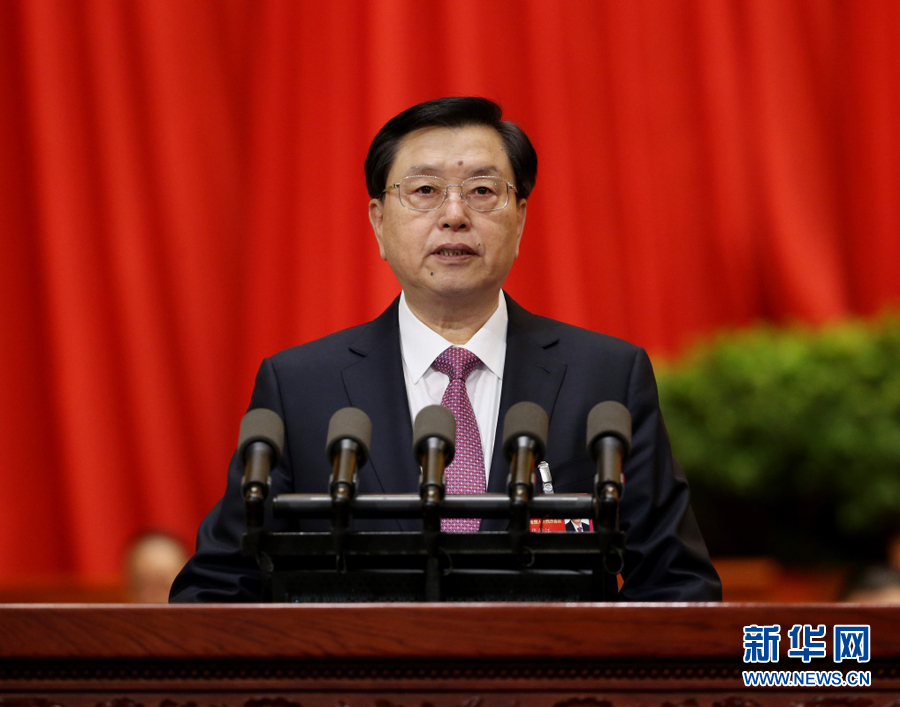 3月9日,十二届全国人大四次会议在北京人民大会堂举行第二次全体会议。全国人大常委会委员长张德江作全国人民代表大会常务委员会工作报告。新华社记者姚大伟摄