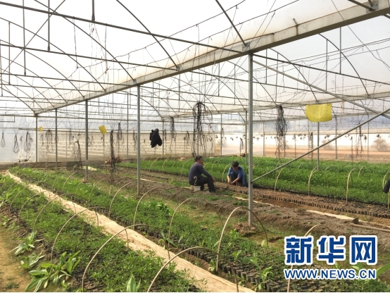 吉州区樟山镇大江边蔬菜基地内农民正在培育苦瓜秧苗。(张建明、黄竞妍 摄)