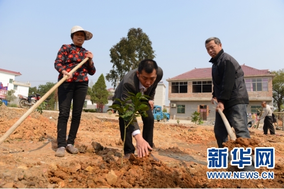 吉州区兴桥镇飞来石村农民在种植井冈蜜柚(张建明、黄竞妍摄)