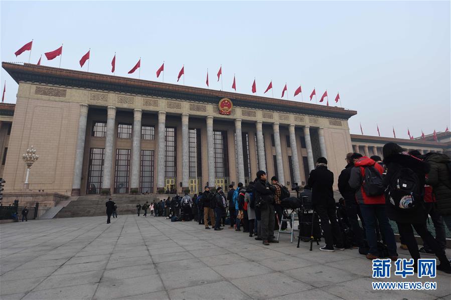 3月16日,第十二届全国人民代表大会第四次会议在北京人民大会堂举行闭幕会。这是媒体记者在排队等候进入人民大会堂。 新华社记者陈晔华摄