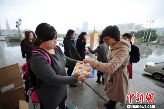 免费试吃的澳门特产受到青睐。 杨华峰 摄