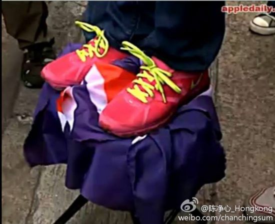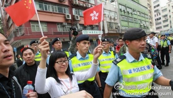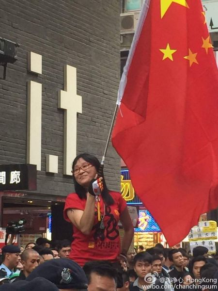 陈净心对观察者网透露了一个细节:那天“港独”分子之所以那么疯狂,是因为陈净心曾在2014年5月把“港独”组织所持的港英旗帜撕烂,并踩在脚下。