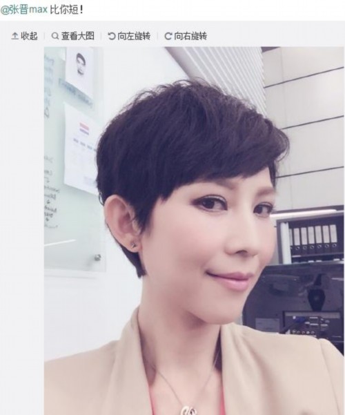 5日晚间,蔡少芬通过微博晒出两张剪短发后的美照,并隔空留言给老公张晋,称“比你短”。张晋看到后,第一时间转发了该微博,并调侃称,“剃光头吧”。蔡少芬则回复道:“真的吗?”