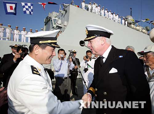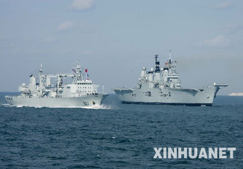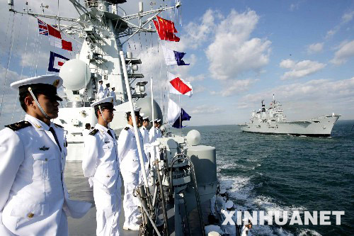 新华网大西洋“广州”号舰9月10日电(记者 查春明) 由“广州”号导弹驱逐舰和“微山湖”号综合补给舰组成的中国海军舰艇编队,10日在朴茨茅斯附近的大西洋海域与英国海军“皇家方舟”号航空母舰成功进行了非传统安全领域的军事演习。