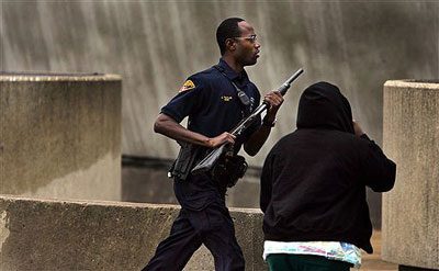 10月10日,一名警察跑向发生枪击案的校园。