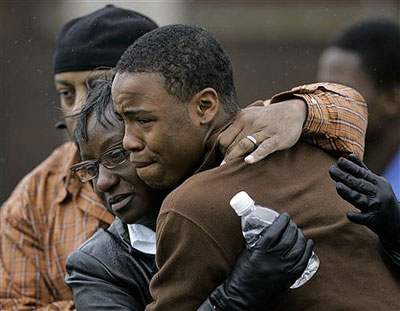 10月10日,在发生枪击案的校园外人们互相安慰。(图片来自:CSBNEWS)
