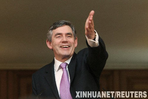 资料图片:7月23日,英国新任首相布朗在伦敦的唐宁街举行他出任首相后的第一次记者招待会