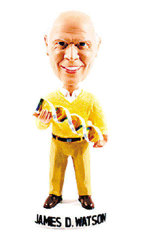 詹姆斯·沃森手捧DNA双螺旋结构的木偶造型(广州日报)