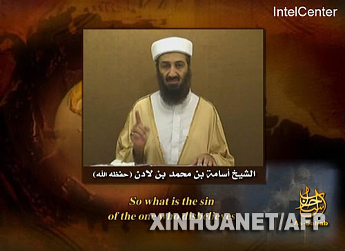 资料图片:美国英特尔中心9月11日提供的这幅录像截图显示了“基地”组织领导人本·拉丹正在发表讲话。在“9·11”事件6周年之际,包含“基地”组织领导人本·拉丹讲话的录像带再度出现。新华社/法新