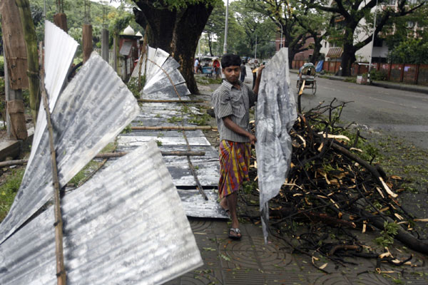 当地电视台的报道说,有100多条渔船在风暴来袭时被困在海上,由于设备简陋,他们没有收到当局播报的风暴警告。风暴摧毁了沿岸数千间简陋的泥草房,将很多人掩埋在下面,大树被连根拔起,电线杆被刮倒,成片的庄稼和鱼塘被毁。在首都达卡,大风甚至把街上广告牌刮得满天乱飞。