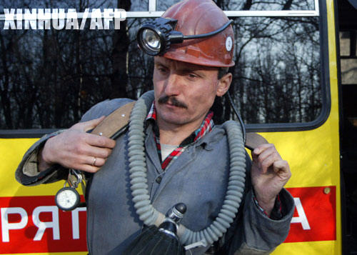 11月18日,在乌克兰东部顿涅茨克的一个煤矿,一名救援人员准备投入救援工作。新华社/法新