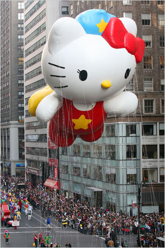 中新网11月23日 美国纽约在当地时间22日举行了感恩节大游行,万人参加场面热烈。巨型卡通造型的气球吸引了很多人。