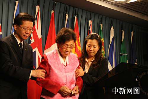 本月25日以来,来自中国山西的刘面焕、韩国的张锦朵、菲律宾的费丹齐亚和荷兰的艾伦四名年逾八旬的“慰安妇”幸存者分别在多伦多、渥太华举行多场听证会,控诉日本政府在二战中强迫妇女充当“慰安妇”的罪行,并呼吁加拿大敦促日本承认战争罪行,向“慰安妇”正式道歉和赔偿。 |