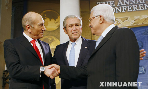 巴勒斯坦民族权力机构主席阿巴斯和以色列总理奥尔默特27日在美国安纳波利斯举行的中东问题会议上,就恢复巴以和谈达成一致。双方在会上表示,将力争在2008年年底前达成一项内容广泛的和平协议。 |