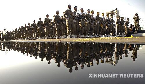 这是2007年9月22日,伊朗革命卫队成员在首都德黑兰参加纪念两伊战争阅兵式的资料照片。 新华社/路透