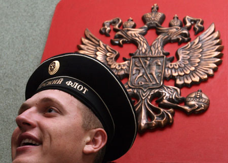 2007年12月2日,一名俄黑海舰队水兵在基地整装待发。法新社