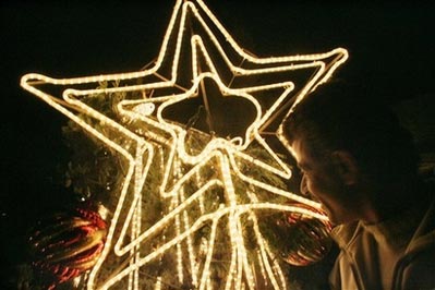 中新网12月16日电 伯利恒当地时间12月15日,巴勒斯坦居民点亮了一颗四层楼高的圣诞树,开启了巴以和平进程陷入僵局7年以来最热闹的圣诞节庆祝。据美联社报道,伯利恒当地官员表示,由于近期巴以重启和谈进程,西岸地区气氛空前和谐,今年前往伯利恒的朝圣者和游客人数可能达到七年最高峰。
