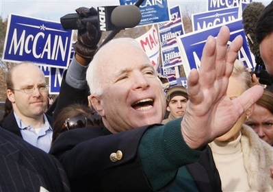 中新网1月9日电 据美国媒体报道,1月9日,麦凯恩在新罕布什尔州共和党初选中获胜。1月8日举行的美国新罕布什尔州初选是美国第一场正式初选。