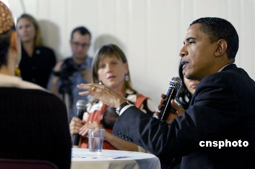 一月十七日,美国总统参选人奥巴马在旧金山与四位不同族裔的年轻单身母亲谈健保和税务政策,争取选票。(资料图 ) 中新社发 陈钢 摄
