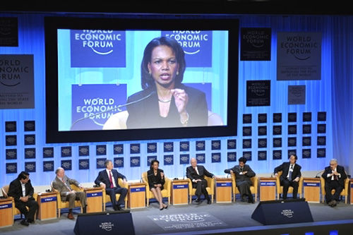 美国国务卿赖斯在世界经济论坛年会上发言。