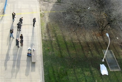 在联合国秘书处大楼的后方,坠楼者的尸体周围已被围起了黄色警戒线。死者被发现后,部分联合国职员被禁止离开大楼。