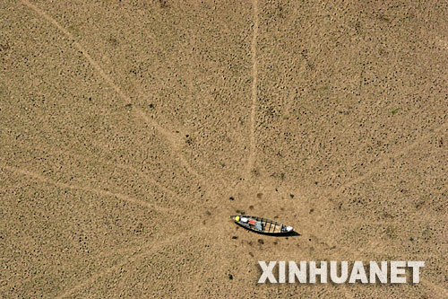 这张拍摄于2005年10月26日的照片显示,一艘小船搁浅在巴西库鲁阿伊湖干涸的湖床上。 新华社发