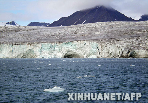 资料图片:这是位于北极附近的挪威斯瓦尔巴群岛的一条冰川(2007年8月23日摄)。自1966年以来,这条冰川已缩减了3.5公里。研究表明,北极地区气候变暖的速度是地球其他地区气候变暖速度的两倍,这对北极地区的生态系统构成了严重威胁。 新华社/法新