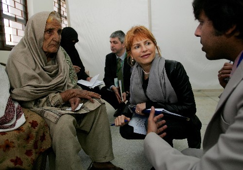 2月18日,在巴基斯坦首都伊斯兰堡郊区,来自欧盟的观察员格鲁勃尔(右二)在投票站了解投票情况。巴基斯坦议会选举于当地时间2月18日8时开始,将选举产生新一届巴国民议会和4个省级议会。国际观察员走访投票站,对选举进行监督。 新华社记者周磊摄
