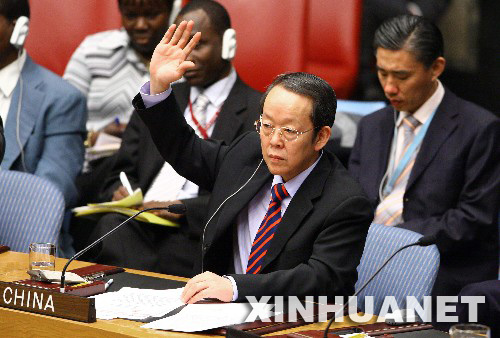 3月3日,中国常驻联合国代表王光亚在安理会举手投赞成票。当日,安理会在美国纽约联合国总部表决通过了有关伊朗核问题的新决议草案。决议继续要求伊朗暂停铀浓缩等活动,重申致力于通过政治和外交谈判和平解决问题,支持国际原子能机构发挥作用。决议还进一步加大了对伊朗实施制裁的力度。 新华社记者侯俊摄