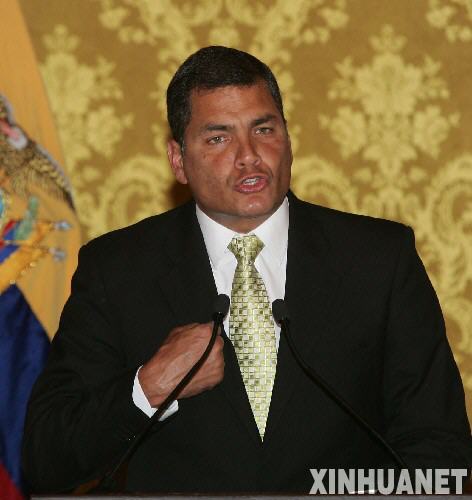 3月2日,厄瓜多尔总统科雷亚在首都基多的总统府宣布驱逐哥伦比亚驻厄大使。同日,厄瓜多尔外交部发表声明说,为抗议哥伦比亚军队1日凌晨在厄瓜多尔境内展开军事行动打击哥最大反政府游击队组织“哥伦比亚革命武装力量”,厄将“无限期”召回驻哥伦比亚大使。 新华社发(阿马斯摄)