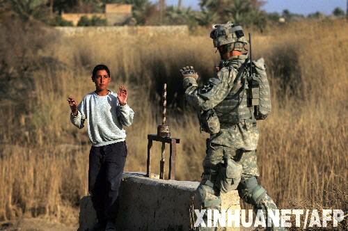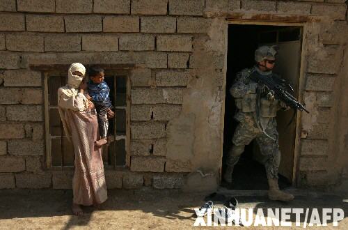 3月8日,一名驻伊美军士兵在伊拉克的迪亚拉省搜查当地居民住房。新华社/法新