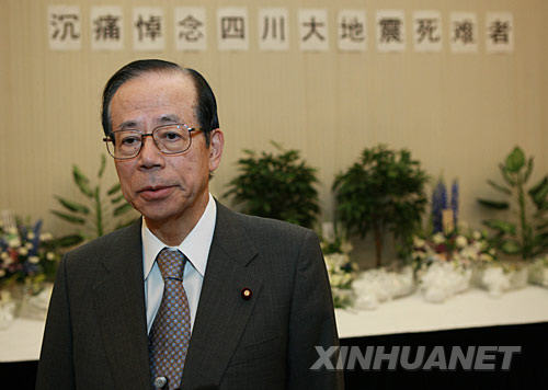 5月21日,在日本首都东京中国驻日本大使馆,日本首相福田康夫吊唁中国四川汶川大地震的遇难者。新华社记者任正来摄