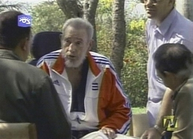 中国日报网环球在线消息:古巴电视台6月17日播出了古巴前领导人菲德尔?卡斯特罗在花园里与委内瑞拉总统查韦斯聊天的画面。这是6个月以来,卡斯特罗首次在大众媒体中“露面”。