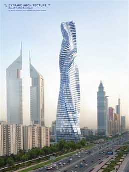 中新网综合报道,意大利设计师大卫-费希尔24日宣布将开建旋转摩天楼,设计方案目前已经基本确定。这种新型纯绿色动态建筑,采用生态动力学供应电能。据设计师介绍,部分房间可360度旋转。他表示,建设这种摩天楼的首选城市是阿联酋的迪拜。其他城市,包括莫斯科,纽约等地也会陆续列入考虑范围。