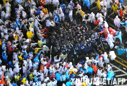 韩国总统李明博24日说,政府不会姑息任何违法、暴力的抗议示威活动。此后,警方便以较为强硬的姿态应对抗议活动。