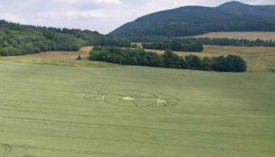 捷克首都布拉格以北110公里处的几个“麦田怪圈”。