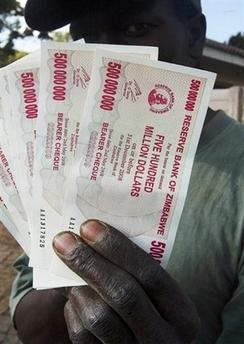 一位津巴布韦男子手持面值500万的钞票。