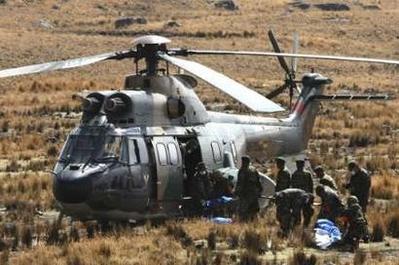 中新网7月22日电 综合报道,当地时间20日,玻利维亚总统埃沃·莫拉莱斯经常乘坐的一架法国产“超级美洲豹”军用直升机在玻利维亚中部城市科恰班巴附近坠毁,机上5人全部遇难。玻利维亚总统莫拉莱斯当时未在机上。