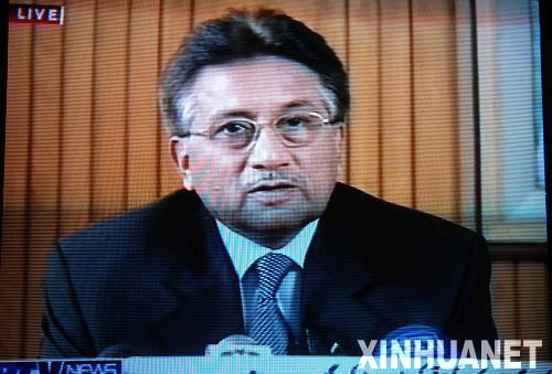 这张8月18日摄自巴基斯坦国家电视台的电视照片显示,巴基斯坦总统穆沙拉夫向全国发表电视讲话宣布辞职。 新华社发