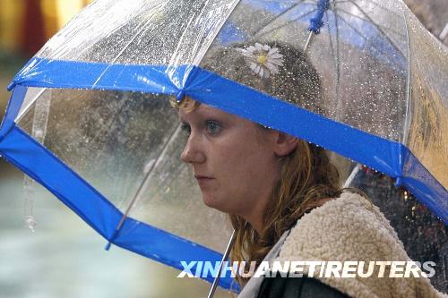 9月5日,行人在纽约街头冒雨前进。纽约市政府当日在其网站发布消息说,“汉娜”将于6日袭击纽约,可能带来强降雨,并将造成局部洪涝。降雨预计将持续到7日上午。新华社/路透