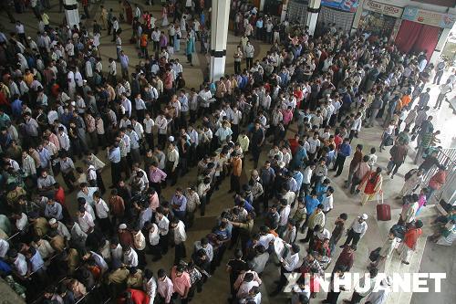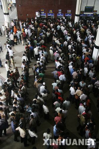 9月18日,在孟加拉国首都达卡中央火车站,人们排队购买车票。开斋节即将来临,数百万孟加拉国人将返回家乡,与亲人团聚。新华社发(扎曼摄)