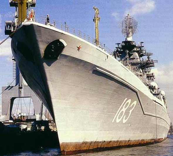 “基洛夫”级战列巡洋舰船体修长,表面设施简洁,一反俄军水面舰只传统特征(资料图片)