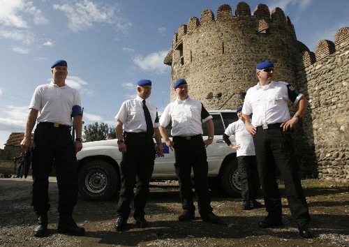 10月1日,欧盟驻格鲁吉亚观察团的观察员们抵达距离格鲁吉亚首都第比利斯西南50公里的一个村庄。当日,欧盟驻格鲁吉亚观察团正式开始行使职能。这个观察团成员约200人,来自欧盟20多个成员国。向格鲁吉亚派遣观察员是欧盟9月中旬紧急外长会议决定的。 新华社/路透